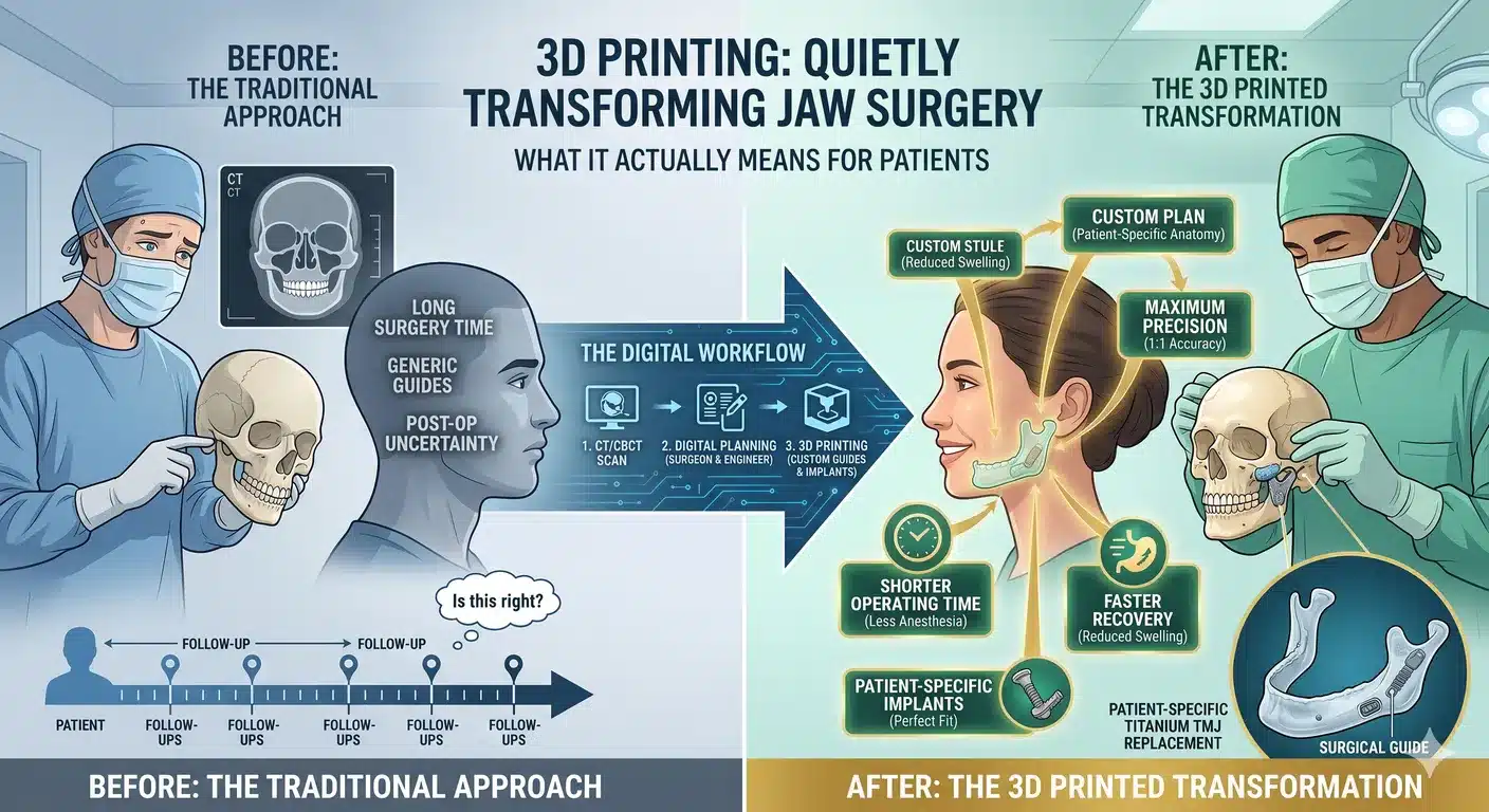 In 2026, the tools have caught up with the ambition. 3D printing, virtual surgical planning, and patient-specific implants have moved from “interesting research curiosity” to routine — and they’re quietly rewriting what’s possible in maxillofacial surgery. If you’re facing a jaw procedure, a TMJ replacement, or a complex revision, there are things happening now that weren’t happening five years ago. It’s worth understanding what they are and why they matter.